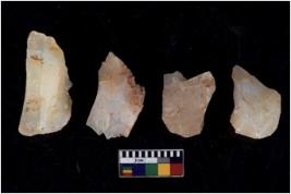 | Description / विवरण | There are n 4 utilized flake cores. There are multidirectional irregular scar pattern on both dorsal and ventral face of the flake cores. One has sharp edges and three have blunted edges. |