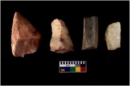 | Description / विवरण | There are n 4 cores; there are multidirectional irregular scar pattern on them. Some of them are tapering at one end. Most of them having blunt edges. |