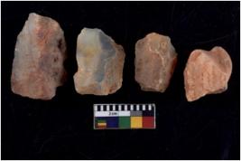 | Description / विवरण | There are n 4 utilized flake cores. There are multidirectional irregular scar pattern on both dorsal and ventral face of the flake cores. One has sharp edges and three have blunted edges. |