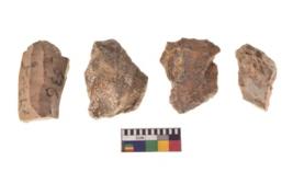 | Description / विवरण | There are n 4 utilized flake cores. There are multi directional irregular scar pattern on both dorsal and ventral face of the flake cores. All of them are tapering at one end. |