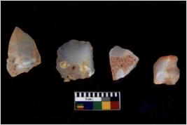| Description / विवरण | Specimen of flake tools with prominent flaking marks. They are made up of a short flakes with sides trimmed. |