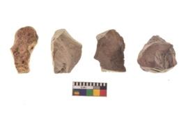 | Description / विवरण | There are n 4 utilized flake cores. There are multi directional irregular scar pattern on both dorsal and ventral face of the flake cores. One has round edge and three have blunted edges. |