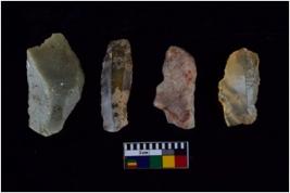 | Description / विवरण | There are n 4 utilized flake cores. Out of them three are made up of Chalcedony and one is made up of Chert. There are multi directional irregular scar pattern on both dorsal and ventral face of the flake cores. All of them are tapering at one end. |