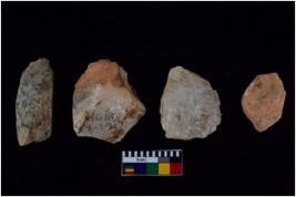 | Description / विवरण | There are n 4 utilized flake cores. Out of them two are made up of Chalcedony and two made up of Chert. There are multi directional irregular scar pattern on both dorsal and ventral face of the flake cores. One has blunted edge and three have round edges. |