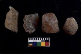 | Description / विवरण | There are n 4 utilized flake cores. There are multidirectional irregular scar pattern on both dorsal and ventral face of the flake cores. One has sharp edges and three have blunted edges. |