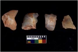 | Description / विवरण | There are n 4 utilized flake cores. There are multidirectional irregular scar pattern on both dorsal and ventral face of the flake cores. One has sharp edges and three have blunted edges. |
