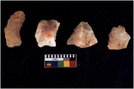 | Description / विवरण | There are n 4 utilized flake cores. There are multidirectional irregular scar pattern on both dorsal and ventral face of the flake cores. One has sharp edges and three have blunted edges. |