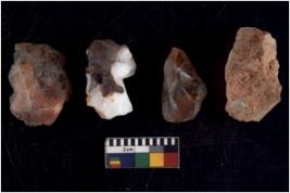 | Description / विवरण | There are n 4 utilized flake cores. There are multidirectional irregular scar pattern on both dorsal and ventral face of the flake cores. One has sharp edges and three have blunted edges. |