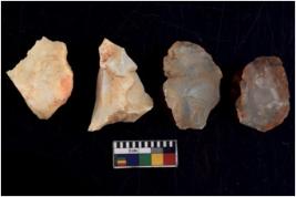 | Description / विवरण | There are n 4 utilized flake cores. There are multidirectional irregular scar pattern on both dorsal and ventral face of the flake cores. One has sharp edges and three have blunted edges. |