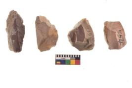 | Description / विवरण | There are n 4 utilized flake cores. There are multi directional irregular scar pattern on both dorsal and ventral face of the flake cores. All of them are tapering at one end. |