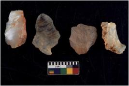 | Description / विवरण | There are n 4 utilized flake cores. There are multidirectional irregular scar pattern on both dorsal and ventral face of the flake cores. One has sharp edges and three have blunted edges. |