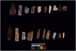 | Description / विवरण | There are n 20 Flake tool; There are multidirectional irregular scar pattern on them. few have blunt edges, Some of them are tapering at one end. |