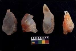 | Description / विवरण | Specimen of flake tools with prominent flaking marks. They are made up of a short flakes with sides trimmed. |