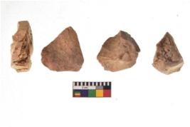 | Description / विवरण | There are n 4 utilized flake cores. There are multi directional irregular scar pattern on both dorsal and ventral face of the flake cores. Three have flat base and one has blunted edge. |