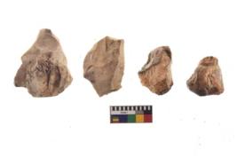 | Description / विवरण | There are n 4 utilized flake cores. There are multi directional irregular scar pattern on both dorsal and ventral face of the flake cores. One has flat base and three have blunted edges. |