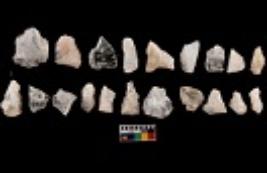 | Description / विवरण | There are n 20 utilized worked flakes; they show multidirectional irregular scar pattern on both dorsal and ventral face of the flakes. |