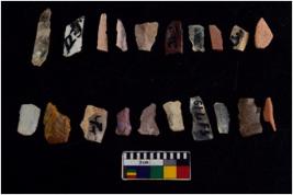 | Description / विवरण | There are n 20 Flake tool; There are multidirectional irregular scar pattern on them. few have blunt edges, Some of them are tapering at one end. |
