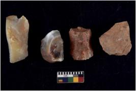 | Description / विवरण | There are n 4 utilized flake cores. There are multidirectional irregular scar pattern on both dorsal and ventral face of the flake cores. One has sharp edges and three have blunted edges. |