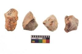 | Description / विवरण | There are n 4 utilized flake cores. There are multi directional irregular scar pattern on both dorsal and ventral face of the flake cores. One is tapering at one end and three have blunted edges. |