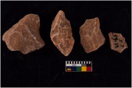 | Description / विवरण | There are n 4 flakes tool; there are flakes tool with prominent flaking marks. It made up of a large flakes with sides trimmed. It is rectangular in shaped. |
