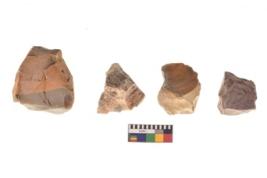 | Description / विवरण | There are n 4 utilized flake cores. There are multi directional irregular scar pattern on both dorsal and ventral face of the flake cores. Three have round edges and one has blunted edge. |