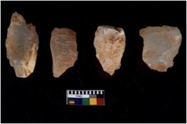 | Description / विवरण | Specimen of flake tools with prominent flaking marks. They are made up of a short flakes with sides trimmed. |