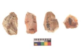 | Description / विवरण | There are n 4 utilized flake cores. There are multi directional irregular scar pattern on both dorsal and ventral face of the flake cores. One is tapering at one end and three have blunted edges. |