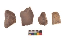 | Description / विवरण | There are n 4 utilized flake cores. There are multi directional irregular scar pattern on both dorsal and ventral face of the flake cores. Two have blunted edges and two have round edges. |