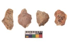 | Description / विवरण | There are n 4 utilized flake cores. There are multi directional irregular scar pattern on both dorsal and ventral face of the flake cores. Two are tapering at one end and two have blunted edges. |