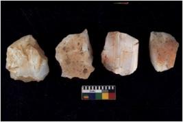 | Description / विवरण | Specimen of flake tools with prominent flaking marks. They are made up of a short flakes with sides trimmed. |