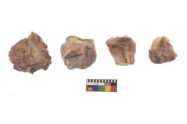 | Description / विवरण | There are n 4 utilized flake cores. There are multi directional irregular scar pattern on both dorsal and ventral face of the flake cores. Three have flat base and one has blunted edge. |