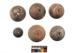 | Description / विवरण | Six areca nut bead with flat base , perforation at center |