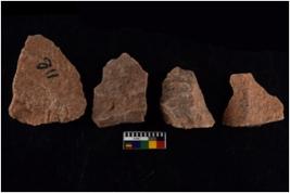 | Description / विवरण | There are n 4 flakes tool; there are large flakes with sides trimmed, Marks of secondary flaking are present on the both the faces. The dorsal is relatively flat. |