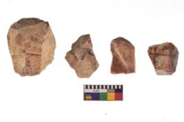 | Description / विवरण | There are n 4 utilized flake cores. There are multi directional irregular scar pattern on both dorsal and ventral face of the flake cores. One has round edge and three have blunted edges. |