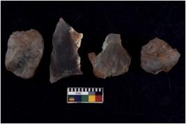 | Description / विवरण | There are n 4 utilized flake cores. There are multidirectional irregular scar pattern on both dorsal and ventral face of the flake cores. One has sharp edges and three have blunted edges. |