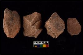 | Description / विवरण | There are n 4 flakes tool; there are large flakes with sides trimmed, Marks of secondary flaking are present on the both the faces. The dorsal is relatively flat. |