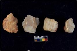 | Description / विवरण | Specimen of flake tools with prominent flaking marks. They are made up of a short flakes with sides trimmed. |