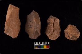 | Description / विवरण | There are n 4 flakes tool; there are flakes tool with prominent flaking marks. It made up of a large flakes with sides trimmed. It is rectangular in shaped. |