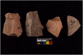 | Description / विवरण | There are n 4 flakes tool; there are large flakes with sides trimmed, Marks of secondary flaking are present on the both the faces. The dorsal is relatively flat. |