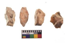 | Description / विवरण | There are n 4 utilized flake cores. There are multi directional irregular scar pattern on both dorsal and ventral face of the flake cores. Two are tapering at one end and two have blunted edges. |