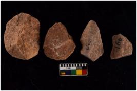 | Description / विवरण | There are n 4 flakes tool; there are flakes tool with prominent flaking marks. It made up of a large flakes with sides trimmed. It is rectangular in shaped. |