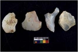 | Description / विवरण | Specimen of flake tools with prominent flaking marks. They are made up of a short flakes with sides trimmed. |