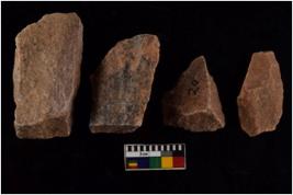 | Description / विवरण | There are n 4 flakes tool; there are large flakes with sides trimmed, Marks of secondary flaking are present on the both the faces. The dorsal is relatively flat. |