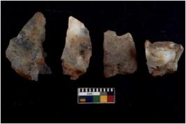 | Description / विवरण | Specimen of flake tools with prominent flaking marks. They are made up of a short flakes with sides trimmed. |