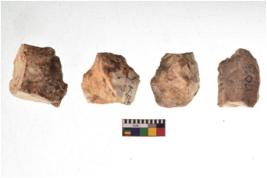 | Description / विवरण | There are n 4 utilized flake cores. There are multi directional irregular scar pattern on both dorsal and ventral face of the flake cores. Three have flat base and one has blunted edge. |