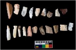 | Description / विवरण | There are n-20 of microliths, all of them are chert. Some of them are partially broken. They show variation in colour, size and shape. Some of them are blunted back baldes, points, triangles, trapezes, crescent and truncated blades. |