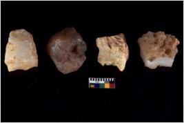 | Description / विवरण | Specimen of flake tools with prominent flaking marks. They are made up of a short flakes with sides trimmed. |