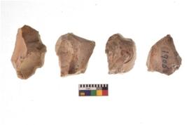 | Description / विवरण | There are n 4 utilized flake cores. There are multi directional irregular scar pattern on both dorsal and ventral face of the flake cores. Three have round edges and one has blunted edge. |