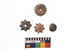 | Description / विवरण | Four melon - beads, perforation at center, well fired |