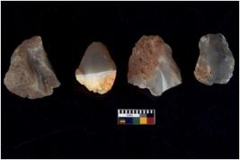 | Description / विवरण | There are n 4 utilized flake cores. There are multidirectional irregular scar pattern on both dorsal and ventral face of the flake cores. One has sharp edges and three have blunted edges. |